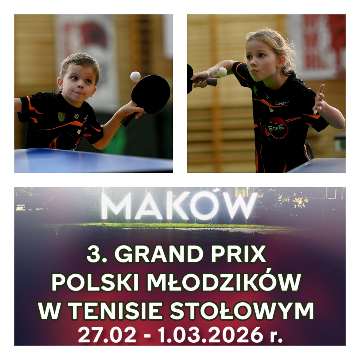 W dniach 27-28.02.2026 r. rozegrano w Makowie III Grand Prix Polski Młodzików i Młodziczek w tenisie stołowym. Wzięli w nim udział zawodnicy SMS Włodawa: Zofia Szmidt i Antoni Szmidt, którzy wystartowali z piątkowych eliminacjach do turnieju głównego. Dla naszych zawodników był to debiut na ogólnopolskiej imprezie tej rangi. Awansować do turnieju głównego niestety się nie udało ale uzyskane doświadczenie i wyciągnięte wnioski na pewno pomogą w dalszej pracy szkoleniowej naszym zawodnikom. Ważne jest że pierwsze zawody ogólnopolskie są już za naszymi zawodnikami a postawa Zosi w przegranym meczu 2:3 z wynikiem 9:11 w piątym secie pokazuje, że praca na treningach przynosi efekty.