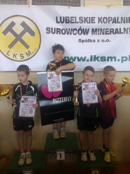 Bardzo pracowicie spędzili weekend najmłodsi zawodnicy SMS Włodawa: Bartosz Zawadewicz i Szymon Zguczyński. W sobotę 11.04.2015 r. w Woli Osowińskiej wzięli udział w Indywidualnych Mistrzostwach Województwa. W grze pojedynczej Mistrzem Województwa został Szymon Zguczyński po drodze nie tracąc nawet seta, Bartosz Zawadewicz sklasyfikowany był na miejscu 5-8. Grajac razem w grze podwójnej również nie dali szans swoim rywalom i zajęli pierwsze miejsce. W niedzielę 12.04.2015 r. w Grabowie Szlacheckim rozegrano Drużynowe Mistrzostwa Województwa w kategori Skrzatów. Tu także zwycięzyli zawodnicy SMS Włodawa uzyskując tytuł Drużynowych Mistrzów Województwa na rok 2015. Gratulujmy zdobycia trzech złotych medali naszym zawodnikom ! Zdjęcia z turniejów można obejrzeć w naszej Galerii.