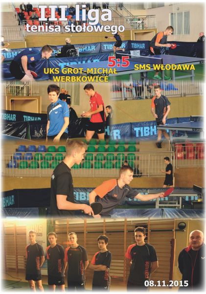 W rozegranym 25.10.2015 r. we Włodawie meczu III ligi mężczyzn w tenisie stołowym drużyna SMS Włodawa, prowadzona przez trenera Adama Płodzienia, pokonała drużynę ULKS Dragon Wojcieszków 7:3.